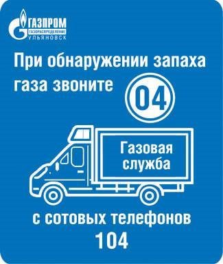 Телефон аварийной газовой службы 04. Все праздничные дни работает круглосуточная горячая линия. Обо всех инцидентах, связанных с газо-, водо-, теплоснабжением, можно сообщать по телефону (8422) 41-48-15.