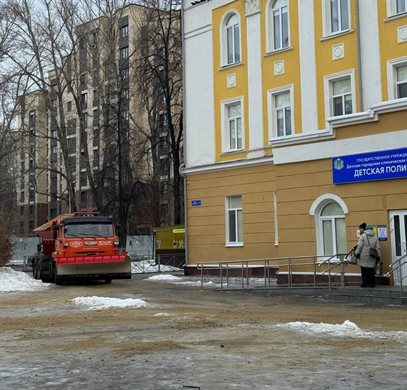 После жалоб ульяновцев территорию у детской поликлиники № 5 обработали песко-соляной смесью