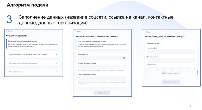 - Владельцы каналов/страниц могут направить через специальную форму минимальный объём базовых сведений о себе и своём канале, включая контактные данные.