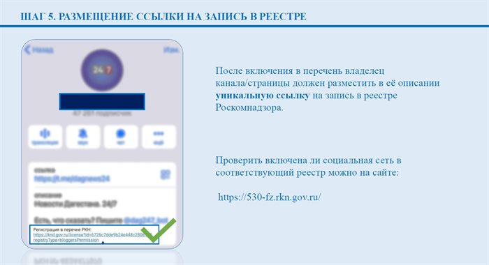 - После включения в перечень владелец канала/страницы должен разместить в её описании уникальную ссылку на запись в реестре Роскомнадзора. По ней другие пользователи и рекламодатели смогут проверить, действительно ли паблик находится в перечне.