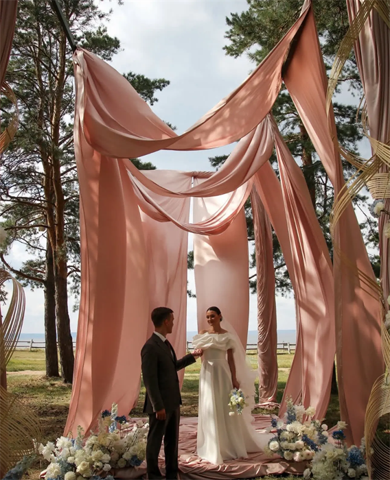 Не менее интересными получились и два других проекта, представленных на конкурс ульяновской командой. Так, ключевым элементом проекта «Легкость, в которой рождается любовь» стала работа с текстилем: мягкие драпировки формировали объем, создавали ощущение движения и визуально «растворяли» границы пространства. В результате, конструкция церемонии воспринималась не как статичный объект, а как живая среда, взаимодействующая со светом, воздухом и природным окружением.