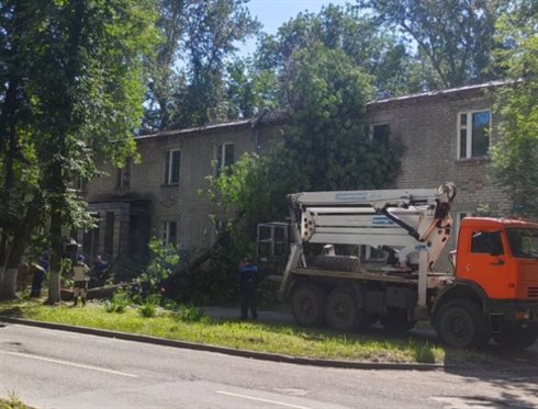 С улицы Ефремова городские службы убрали накренившееся дерево