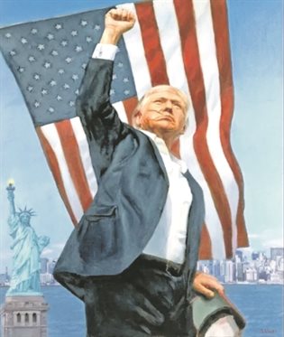 - Для меня важно было запечатлеть кровь, шрам и его храбрость в момент покушения. Он не сломался и не испугался, а поднял руку и показал, что он един с Америкой и вернет ей то, что она заслуживает, - сообщил в интервью «Вечерней Москве» Никас Сафронов.