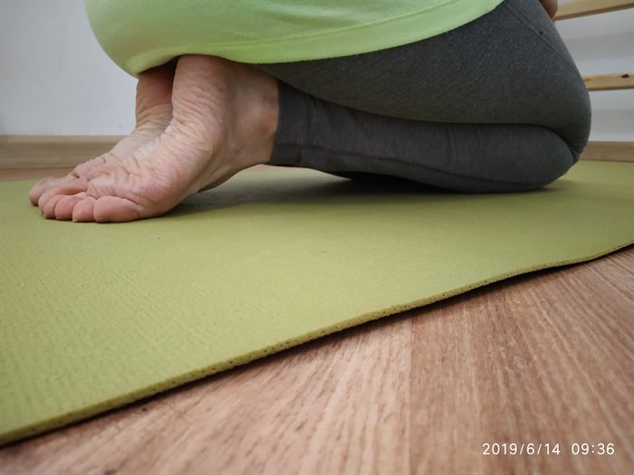 Попробуйте выполнить ее элемент: сядьте ровно, подвернув ноги под себя. Спину, грудной отдел, шею и голову держите прямо, руки разместите на бедрах в области колен. Эта поза также полезна для тех, у кого сводит икроножные мышцы, ведь опуская таз на пятки, мы мягко воздействуем весом тела на средний отдел стопы и передние лодыжки. Старайтесь сохранить параллельность стоп, следите за ровным положением тела. Не наклоняйтесь вперед или назад.