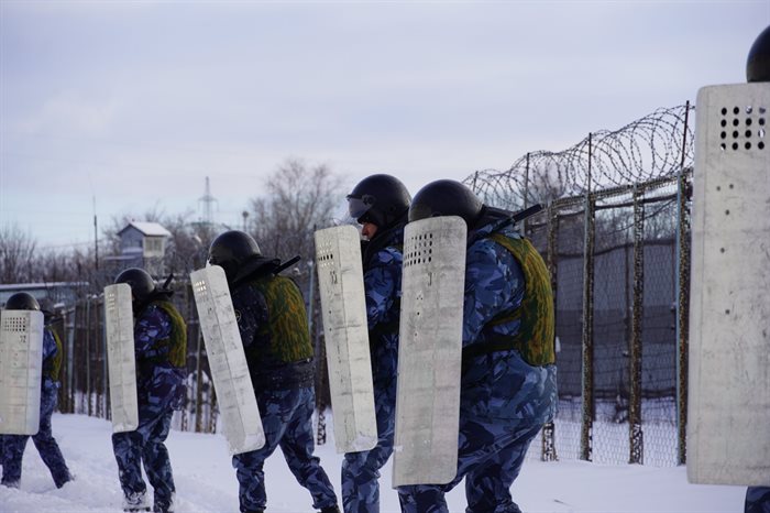 На базе исправительной колонии № 4 прошло тактико-строевое занятие по отработке действий сил и средств в специальной операции по розыску и задержанию осужденных и лиц, содержащихся под стражей, совершивших побег из-под охраны, а также по отработке действий по освобождению заложников.
