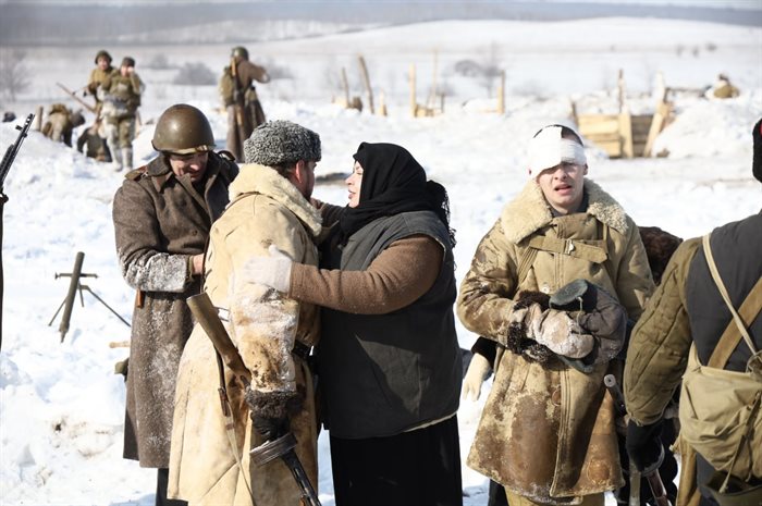Выжженное поле, припорошенное колючим снегом. Советские танки, вздымающие гусеницами мерзлую землю. Немецкие солдаты в серо-зеленых шинелях, вмерзающие в окопы под шквалом «катюш». «За Родину! За Сталина!» - раздаются им вслед крики советских воинов.