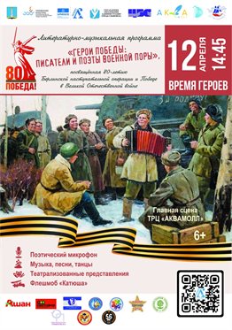 Самое яркое событие предстоящих выходных - литературно-музыкальная программа «Герои Победы: писатели и поэты военной поры» и массовый флешмоб «Катюша» (6+). Самую популярную песню ХХ века будут петь преподаватели и учащиеся детских школ искусств, общеобразовательных школ города, зрители и посетители торгового центра. Запевает ее любимец ульяновцев, известный артист Владимир Самарёв. Мероприятия будут проходить в ТЦ «Аквамолл» 12 апреля. Начало программы «Герои Победы» - в 14:45, флешмоба - в 16:00. Организаторы мероприятия: дирекция «Ульяновск – литературный город ЮНЕСКО» при участии Управления культуры города Ульяновска.