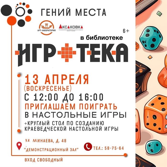 Детская областная библиотека им. С.Т. Аксакова 13 апреля организует игротеку и круглый стол, посвящённый созданию настольной краеведческой игры для детей и подростков. В клубе «Речецветик» будут говорить о истории освоения космоса, почитают книгу Бориса Войцеховского «Необыкновенные приключения Пети в космосе», познакомятся со сказками звёздного неба, посмотрят с помощью проектора на планеты Солнечной системы и нарисуют «Загадочный космос». (6+).