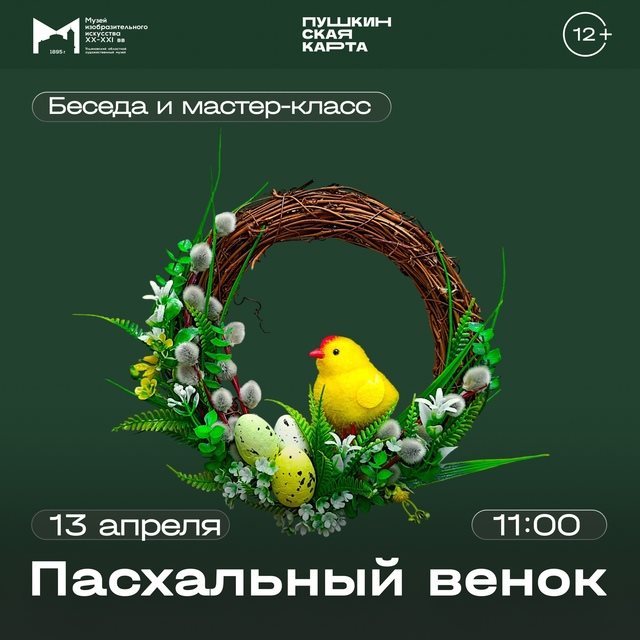 На мастер-классах в городских музеях можно будет попробовать свои силы в создании «Волшебного калейдоскопа» (6+), салфетницы в технике чеканки (6+), плетению фенечек в технике макраме (6+) в Выставочном зале «На Покровской», сделать пасхальный венок и ароматное флористические саше (12+) в Музее изобразительного искусства XX - XXI вв.