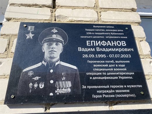 «Вчера депутат ЗСО Роман Султашов вместе с комсомольцем Дмитрием Туктамышевым посетили здание лицея, где учился Вадим Епифанов. Сохранение памяти о подвиге наших бойцов — это наша первостепенная задача, мы должны делать все для того, чтобы имена героев остались на страницах истории России», - добавил сенатор.