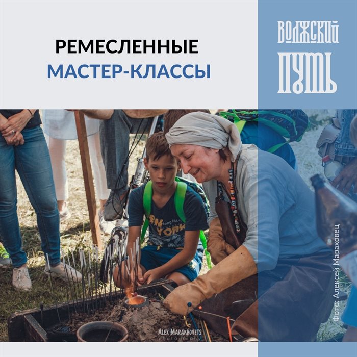 Затем по всей территории «Великого Волжского пути» заработают ремесленные мастер-классы. Можно будет не только увидеть, как работают гончары, кузнецы, ткачи, стеклодувы, штамповщики тканей, чеканщики монет, но и попробовать свои силы в этих ремеслах. Например, собственными руками изготовить бусы из стекла или сплести вместе с детьми куклу.