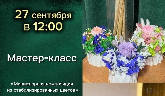 В Новом городе студия стабилизированной флористики Velvet Bloom* в субботу будет проводить мастер-класс по созданию цветочной композиции из стабилизированных цветов. Такой букет будет радовать своей красотой целый год. Каждый участник сделает свою оригинальную композицию, интуитивно выбирая сочетания цветов и форм. (12+).