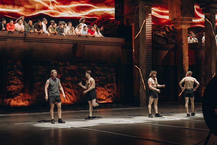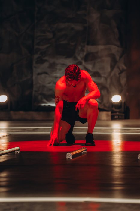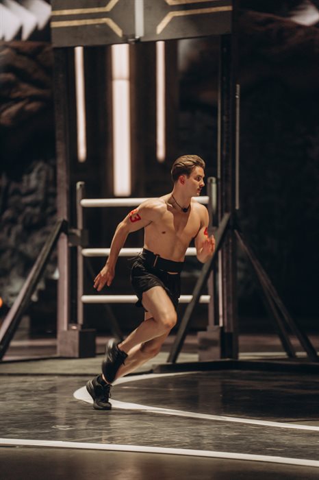 Вторым испытанием для атлетов стал бег с препятствиями. Для прохождения испытания атлеты были разделены на три группы по три атлета. Спортсменам было необходимо бежать друг за другом, при этом каждый атлет должен был как можно быстрее коснуться впереди бегущего. Испытание считалось законченным, когда на трассе оставался только один из тройки.