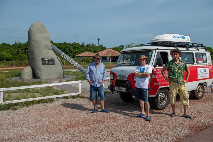 Знаменательное событие произошло 30 октября 2018 года. Красно-белый УАЗ-2206 с опытным путешественником Александром Морозовым, известным также как Саша Холодный, штурманом Николаем Баландинским и оператором Рустемом Казанбаевым пересёк экватор в бразильском городе Манаус. Российский внедорожник переехал из Южного полушария в Северное, находясь при этом в Западном.