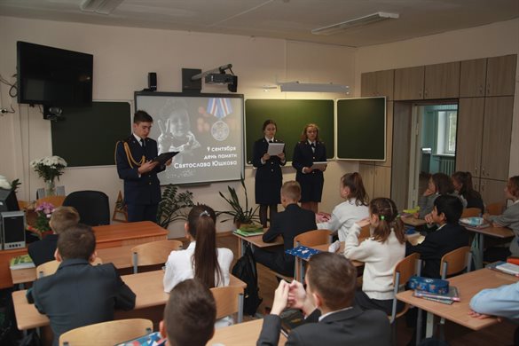 Ульяновские кадеты СК России рассказали ученикам средней школы № 15 о подвигах их сверстников на примере Святослава, а также других детей-геров – Жени Табакова, защищавшего сестру от преступника, Данилы Садыкова, спасшего утопающего мальчика ценою своей жизни.