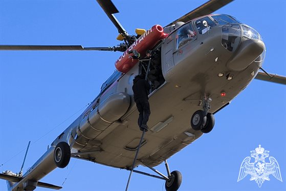 Сотрудники спецподразделений Управления Росгвардии по Ульяновской области провели тренировочные спуски по канату с борта вертолета МИ-8.