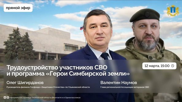 Проходят обучение, готовятся к работе в органах власти, стремятся к спортивным вершинам – как вернувшиеся из зоны боевых действий ульяновские герои реализуют себя в мирной жизни рассказали в прямом эфире ЦУР Ульяновской области. Руководитель ульяновского филиала фонда «Защитники Отечества» Олег Шигирданов и глава региональной ассоциации ветеранов СВО Валентин Наумов поделились вдохновляющими примерами и рассказали о региональной программе «Герои Симбирской земли».