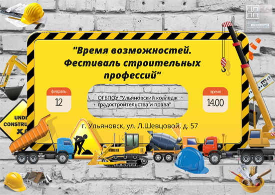 Региональный профориентационный фестиваль строительных профессий состоится 12 февраля в 14.00 в Ульяновском колледже градостроительства и права.