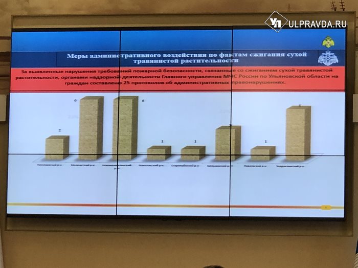 На аппаратном совещании доложили о ситуации с пожарами в Ульяновской области. Всего за неделю сотрудники МЧС 200 раз выезжали на тушение пожаров. Крупный пожар произошёл 14 апреля недалеко от села Богдашкино Чердаклинского района.