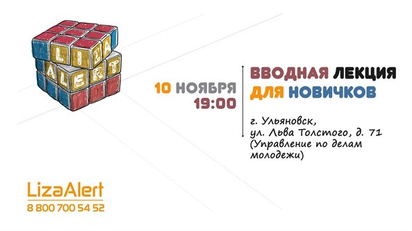 10 ноября в 19:00 на улице Льва Толстого 71 пройдет встреча для желающих познакомиться с деятельностью поискового отряда «ЛизаАлерт» (12+). Ульяновцы узнают, почему отряд так называется, какие бывают поиски и как к ним присоединиться.