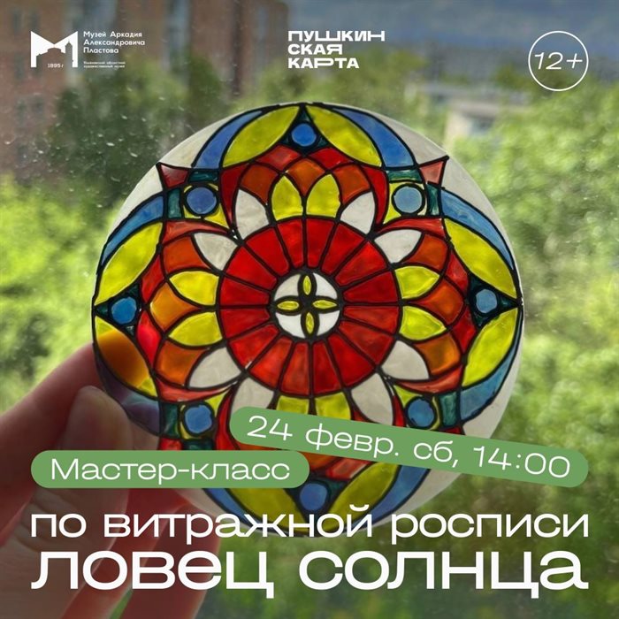 Поймать первое весеннее солнышко, рассеять его цветными лучами, наполнить дом радостью поможет ловец снов, выполненный в витражной технике. Его будут делать в Музее Аркадия Пластова в 14.00. Витраж – не совсем привычная техника для ловца снов. Гораздо чаще его делают из цветных ниток, перьев, бусин, других декоративных элементов. Значит, на мастер-классе можно будет поймать сразу двух зайцев: поработать с витражными красками и контуром, освоив оригинальную технику, и сделать интересный декоративный предмет. (12+).