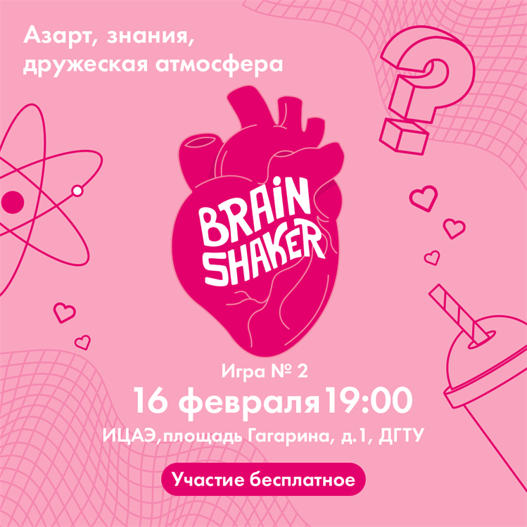 «BrainShaker — это командный интеллектуальный турнир, который включает в себя пять непохожих друг на друга туров. Первый тур – классический квиз, где игрокам нужно ответить на 15 вопросов из разных областей знаний. Во втором туре участникам необходимо восстановить хронологическую последовательность событий из мира науки. Вопросы третьего раунда прозвучат из разных уголков России – их зададут команды сети ИЦАЭ. В четвёртом раунде «Кто я?» командам нужно определить, от лица какого учёного обращается к зрителям автор вопроса. Для финального раунда вопросы готовят эксперты ИЦАЭ: шанс заработать максимальные баллы подарят исследователи и инженеры, научные журналисты и преподаватели», - рассказали организаторы.