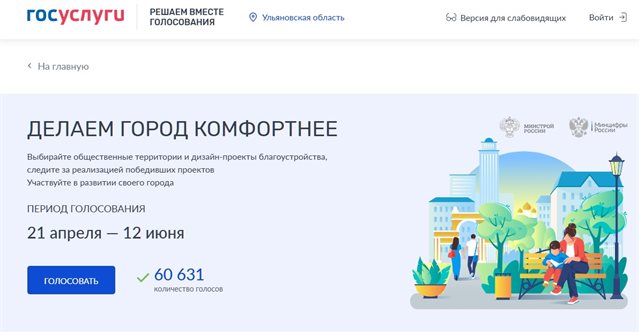 В Ульяновской области по национальному проекту «Инфраструктура для жизни», инициированному президентом России Владимиром Путиным, с 21 апреля проводится всероссийское онлайн-голосование за объекты благоустройства.