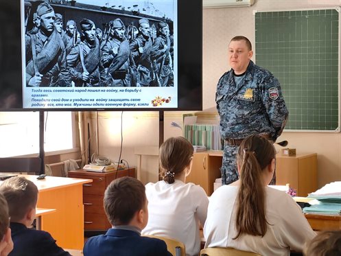 Сотрудник органов принудительного исполнения Алексей Егоров провел для местных пятиклассников «Урок мужества».