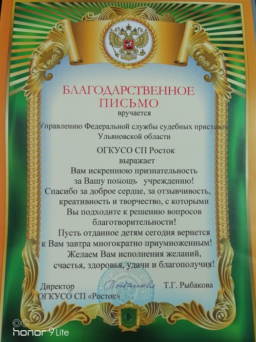 Награждением за доброе дело сотрудников УФССП России по Ульяновской области стали счастливые глаза детей, лишенных родительской заботы, и благодарственное письмо от директора учреждения.