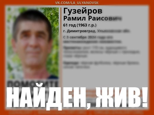 3 сентября во втором по величине городе Ульяновской области пропал Г. Рамил Раисович. Ему 61 год (1963 года рождения).