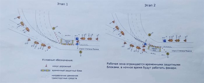 Со 2 июня из-за строительства ливневой канализации будет ограничено автомобильное движение на легковой «восьмёрке» спуска Степана Разина. Работы будут вестись на трёх участках дороги с переменным перекрытием обеих полос.