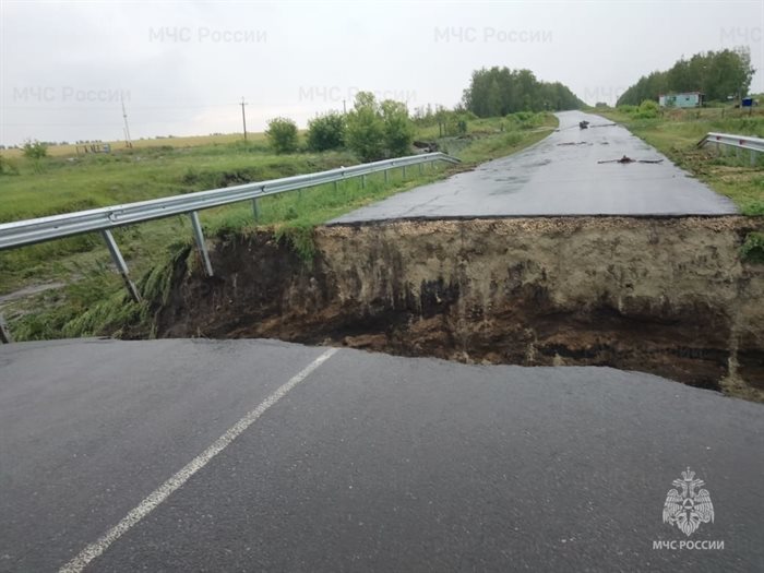 В воскресенье, 13 июля, в МЧС поступило экстренное сообщение от единой дежурно-диспетчерской службы Николаевского района: сильные ливни привели к размыву участка автодороги регионального значения М-5 «Урал» - Сухая Терешка в районе села Куроедово, повредив несущие конструкции моста.