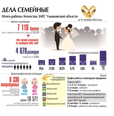 В 2022 году отмечается 105-летие образования органов ЗАГС России. 18 декабря в Губернаторском зале гостиницы «Рэдиссон» областных работников Агентства ЗАГС поздравил глава региона Алексей Русских и наградил знаками отличия, памятными подарками и благодарственными письмами. Сегодня в органах ЗАГС Ульяновской области трудятся всего 130 человек, каждый день выполняющих колоссальный объем работы.