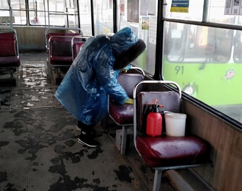 Дезинфекции электротранспорт подвергается дважды в смену на территории депо, а также до 4 раз за день на конечных остановках с использованием хлорсодержащих средств, рекомендованных Роспотребнадзором.