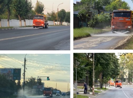 В первую очередь бригады Городского центра по благоустройству и озеленению поливают молодые саженцы и цветочные клумбы. Ежесуточно в двусменном режиме «Дорремстрой» задействует до 17 поливомоечных автомобилей для увлажнения и охлаждения асфальтового покрытия дорог. Также ведётся помывка тротуаров и остановок общественного транспорта.