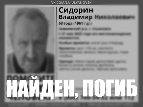 Поисковый отряд «ЛизаАлерт» сообщает, что с 21 мая ведутся поиски Владимира Сидорина.