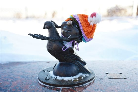 В Ульяновске многодетная семья нарядила скульптуры колобков в яркие зимние наряды
