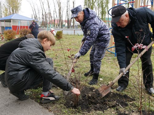 Военнослужащие Управления Росгвардии по Ульяновской области и ветераны войск правопорядка вместе с учащимися и педагогами подшефной школы № 10 высадили саженцы деревьев в честь 80-й годовщины окончания Великой Отечественной войны и в память об офицере внутренних войск МВД СССР, Герое Советского Союза, подполковнике Иване Петровиче Громове.