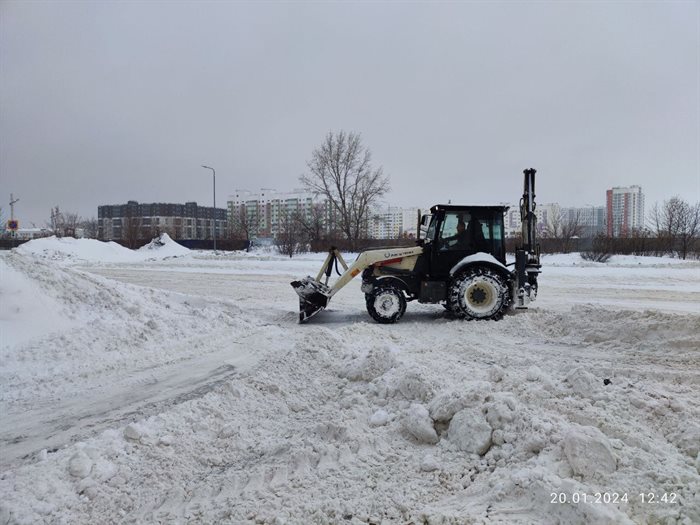На помощь в расчистке площадей около ДК 1 Мая, «Руслан» и «Строитель», ККК «Современник» приходят специальные машины-снегоуборщики, «бобкаты» и «тяжелая артиллерия» в виде тракторов.