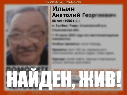 Поисковый отряд «ЛизаАлерт» сообщает, что в Ульяновской области ведутся поиски 68-летнего Анатолия Ильина.