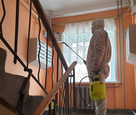 Хлорсодержащим составом обрабатываются перильные ограждения подъездов, входные группы, вызывные панели и кабины лифтов, почтовые ящики. Работы осуществляются в ежедневном режиме, дополнительно осуществляется обработка мест общего пользования в домах, где проживают граждане, относящиеся к группе риска.