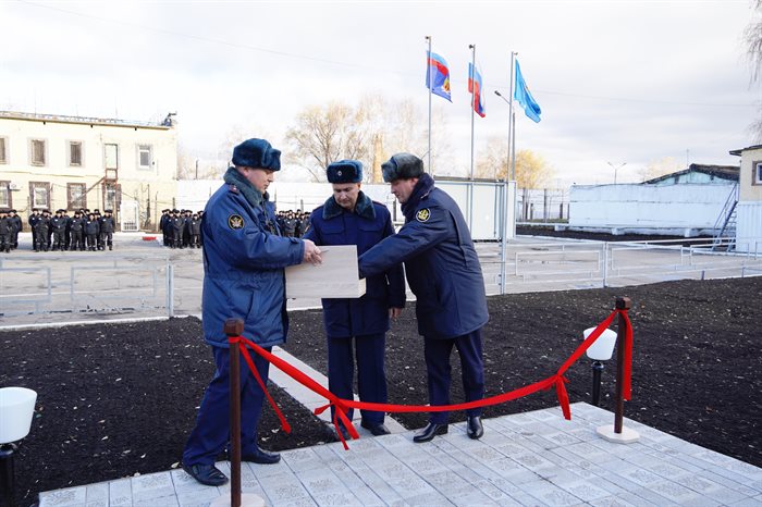 Почетное право перерезать красную ленту к памятнику предоставлено заместителю начальника УФСИН России по Ульяновской области Андрею Васильеву и временно исполняющему обязанности начальника ИК-8 Ивану Павлову.