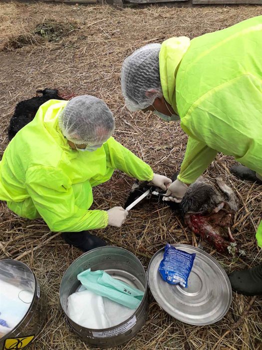 Сотрудники ОГБУ «Симбирский референтный центр ветеринарии и безопасности продовольствия» выехали на место происшествия с целью отбора проб на исключение особо опасных заболеваний.