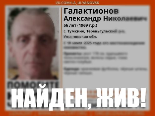 Поисковый отряд «ЛизаАлерт» сообщает, что в Ульяновской области пропал 56-летний Александр Галактионов.