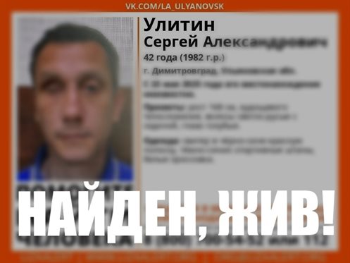 Поисковый отряд «ЛизаАлерт» сообщает, что с 23 мая в Ульяновской области ведутся поиски Сергея Улитина.
