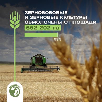 По официальной информации минсельхоза, по состоянию на 20 октября зерновые и зернобобовые культуры обмолочены с площади 652 202 га, или 99% от плана. Намолочено 1 миллион 931 тысяча 660 тонн. Урожайность - 29,6 ц/га.