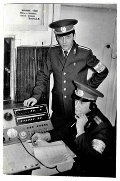 «На этом фото папа в дежурной части рядом с табличкой линейного отдела, - поясняет Наталья Константинова. - Тогда ещё не были настолько развиты цифровые технологии и таблички писали от руки».