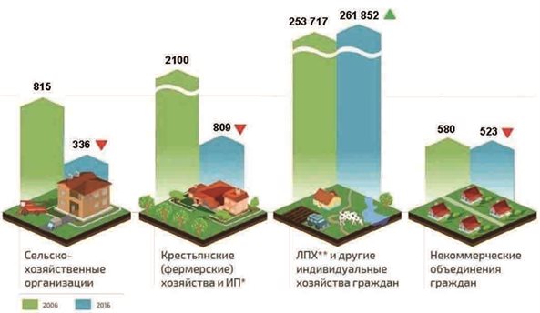 Выросло число личных подсобных хозяйств граждан – по области на 3,2% (с 253,7 тысячи до 261,8), но уменьшилось количество сельскохозяйственных организаций более чем на 50% (с 815 до 336), а также крестьянских (фермерских) хозяйств и индивидуальных предпринимателей на 61% (с 2100 до 809) и некоммерческих объединений граждан на 9,8% (с 580 до 523). Одновременно возрос удельный вес сельхозорганизаций, осуществляющих сельскохозяйственную деятельность с 56% до 84%, крестьянских (фермерских) хозяйств и индивидуальных предпринимателей – с 31% до 86%.