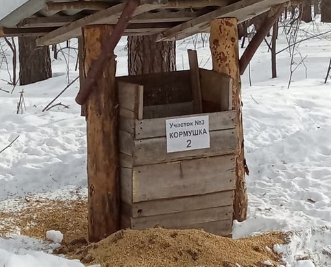 Соль, кормосмесь и веточный корм раскладываются на специальных площадках, которые весьма популярны у диких животных.