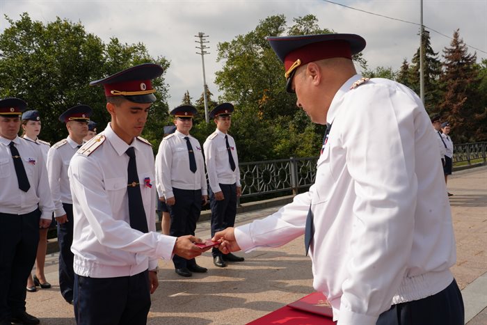 На церемонии принятия Присяги пять молодых сотрудников дали торжественное обещание стоять на страже законности и правопорядка, уважать и соблюдать права и свободы человека, добросовестно исполнять свои служебные обязанности.